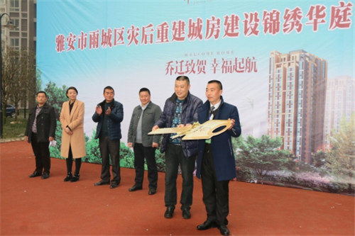 沙灣A區(qū)安居房(錦繡華庭)位于雨城區(qū)沙灣片區(qū),項目投資5.89億元,占地面積39.5畝。項目總建筑面積156621.17㎡,共8棟,3-26層電梯公寓,910套,項目注重完善配套設施,配齊社區(qū)物管,社區(qū)活動中心及便民超市,居民將在領取鑰匙后陸續(xù)喜遷新居。作為災后重建城房重建工程,交房儀式將標志圓滿完成該項目標任務,圓了群眾安居夢,為居民創(chuàng)造一個安全、舒適的居住環(huán)境,同時預示著城房重建再上新臺階。