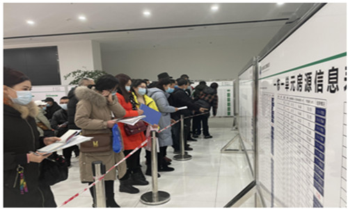 選房現(xiàn)場,工作人員堅(jiān)持程序規(guī)范到位,并耐心仔細(xì)地為每位選房安置戶講解樓盤示意圖,讓安置戶們都能夠快速準(zhǔn)確的選定自己心儀的房源,整個(gè)現(xiàn)場井然有序,所有流程“三公開一透明”。雖然天氣寒冷,但安置戶們都難掩心中喜悅。
