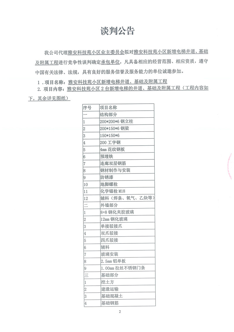 雅安科技苑小區(qū)新增電梯井道、基礎(chǔ)及附屬工程——競(jìng)爭(zhēng)性談判