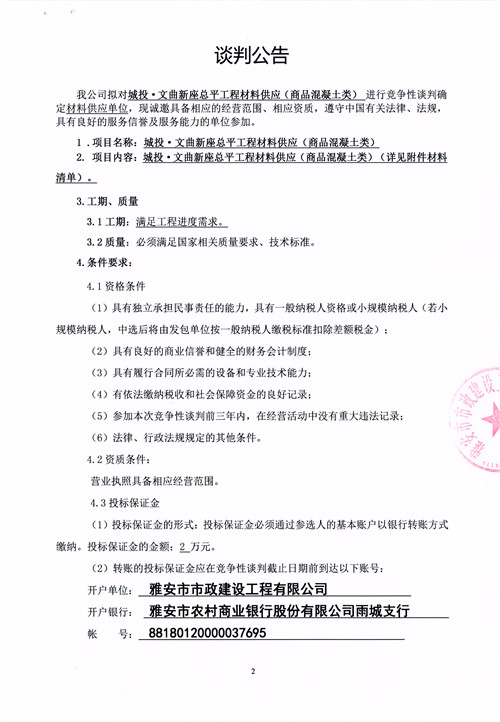 市政公司城投·文曲新座總平工程材料供應(yīng)(商品混凝土類)競爭性談判公告
