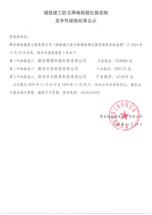 城投建工防塵降噪檢測(cè)儀器采購(gòu)競(jìng)爭(zhēng)性磋商結(jié)果公示