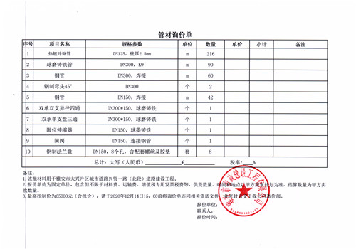 市政公司興貿(mào)一路鋼管鋼制配件詢價單