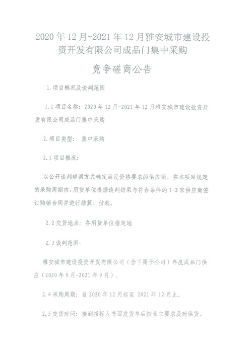 2020年12月-2021年12月雅安城市建設(shè)投資開發(fā)有限公司成品門集中采購競(jìng)爭(zhēng)磋商公告