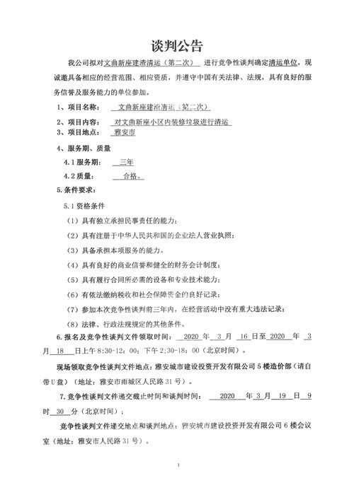 城投物業(yè)公司文曲新座建渣清運(yùn)(第二次)競(jìng)爭(zhēng)性談判公告