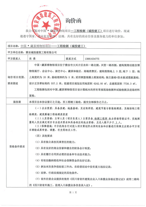中國·藏茶博物館項目工程檢測單位詢價函(第二次).doc