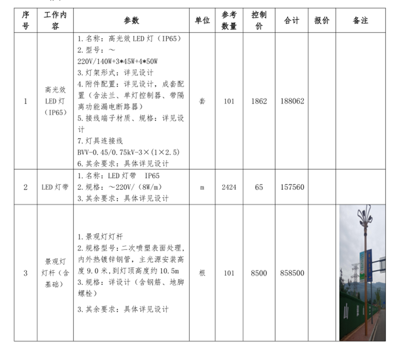 2.1項(xiàng)目內(nèi)容:雅安文教新城市政道路恢復(fù)重建項(xiàng)目(一標(biāo)段)照明工程材料采購供貨商的確定,保障市政公司相關(guān)工程的順利進(jìn)行,具體貨物見材料清單(本招標(biāo)文件所附清單(數(shù)量、規(guī)格、種類)僅供參考,最終采購數(shù)量實(shí)際發(fā)生(分散采購)的為準(zhǔn))。