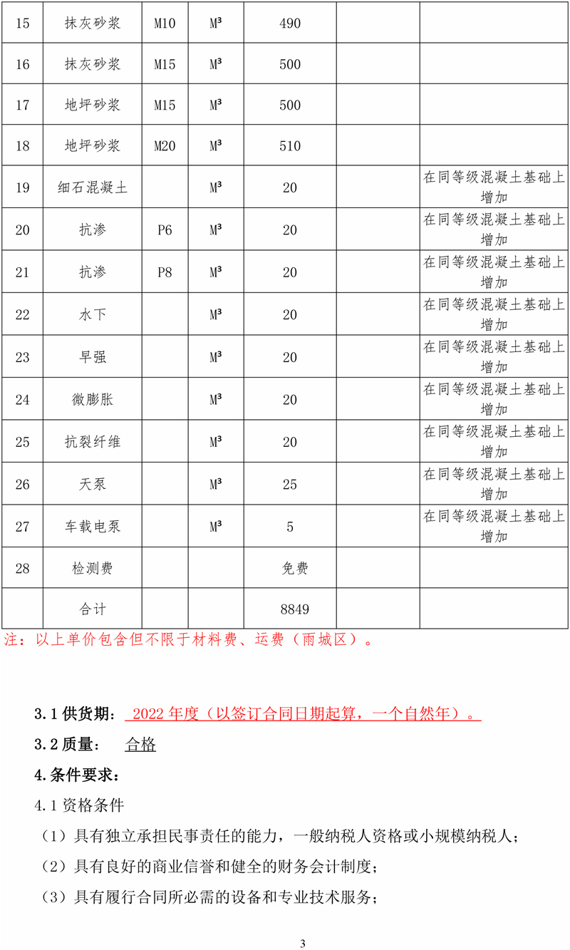 雅安市市政建設(shè)工程有限公司2022年度商品混凝土采購項目競爭性談判公告