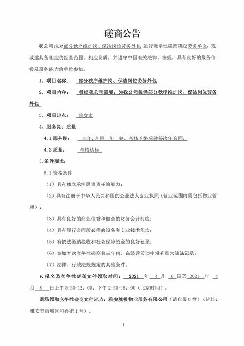 城投物業(yè)公司部分秩序維護(hù)崗、保潔崗位勞務(wù)外包競爭性磋商公告