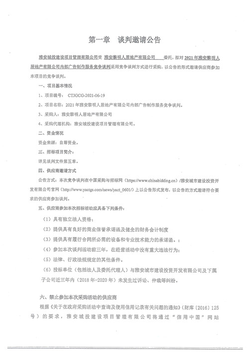 黎明人居公司內(nèi)部廣告制作服務(wù)競爭性談判公告
