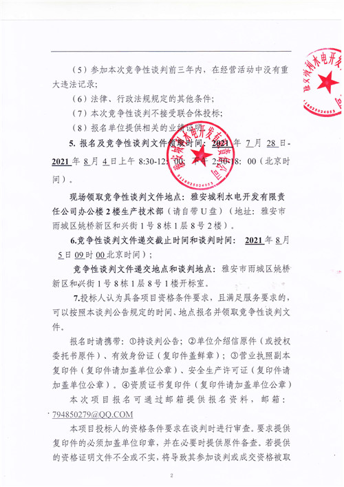 城利水電公司滎經(jīng)縣羅家灣電站大壩注冊登記工作相關(guān)資料編制競爭性談判公告