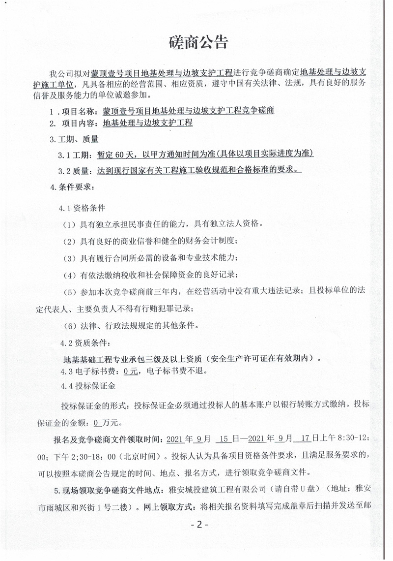 蒙頂壹號(hào)項(xiàng)目地基處理與邊坡支護(hù)工程競(jìng)爭(zhēng)磋商公告