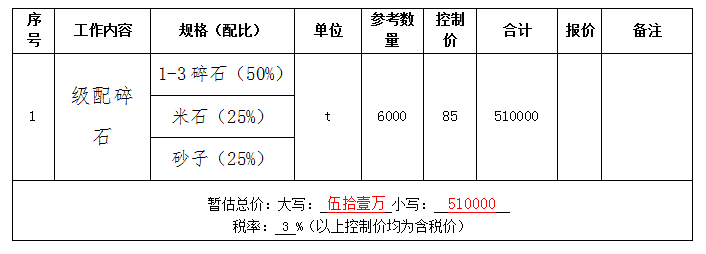 注:1、單價單位為元,單價為含稅單價,稅率不得低于3%。