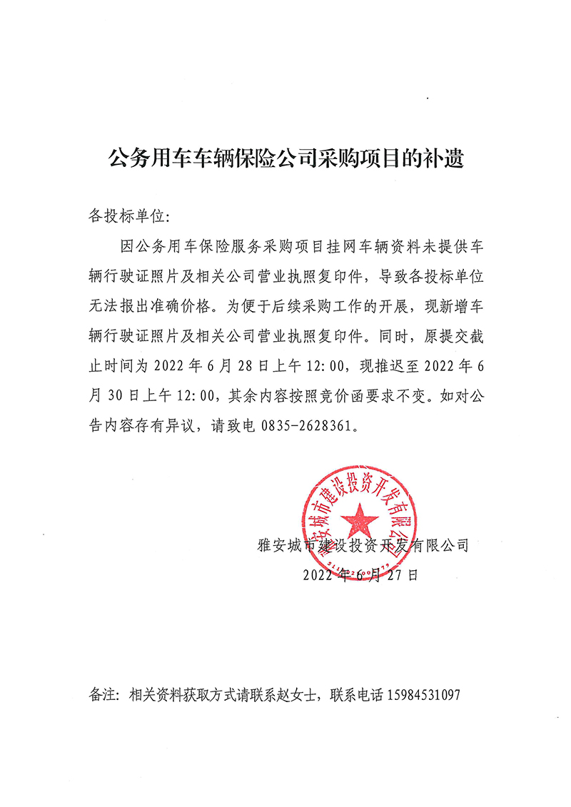 公務(wù)用車車輛保險(xiǎn)公司采購(gòu)項(xiàng)目的補(bǔ)遺