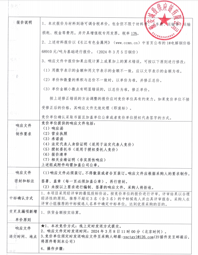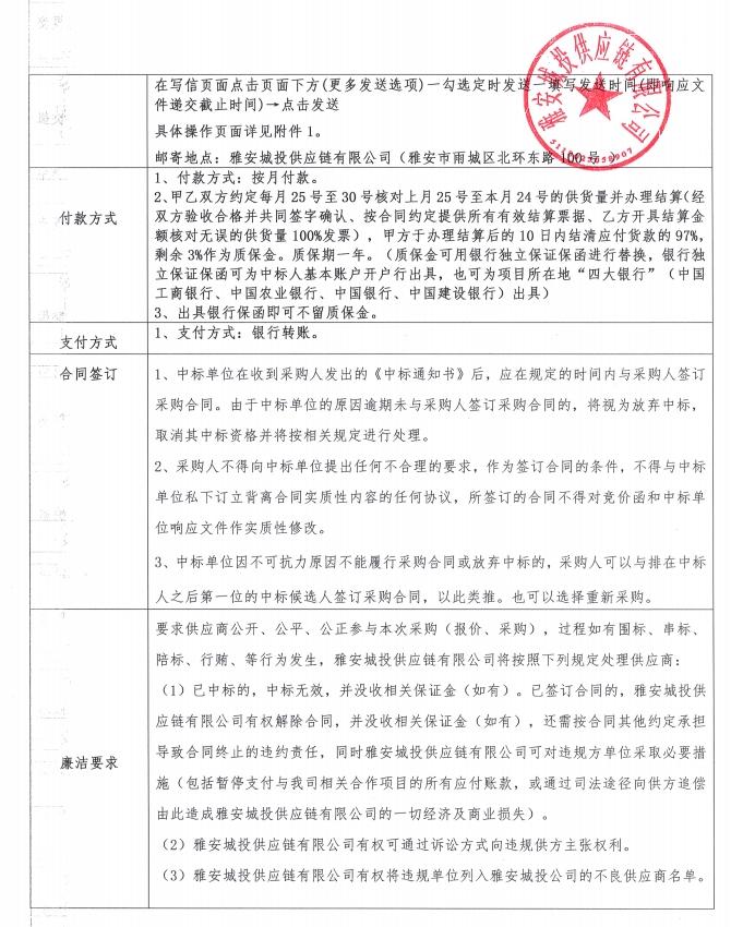 雅安城投供應鏈有限公司電線電纜采購競價公告