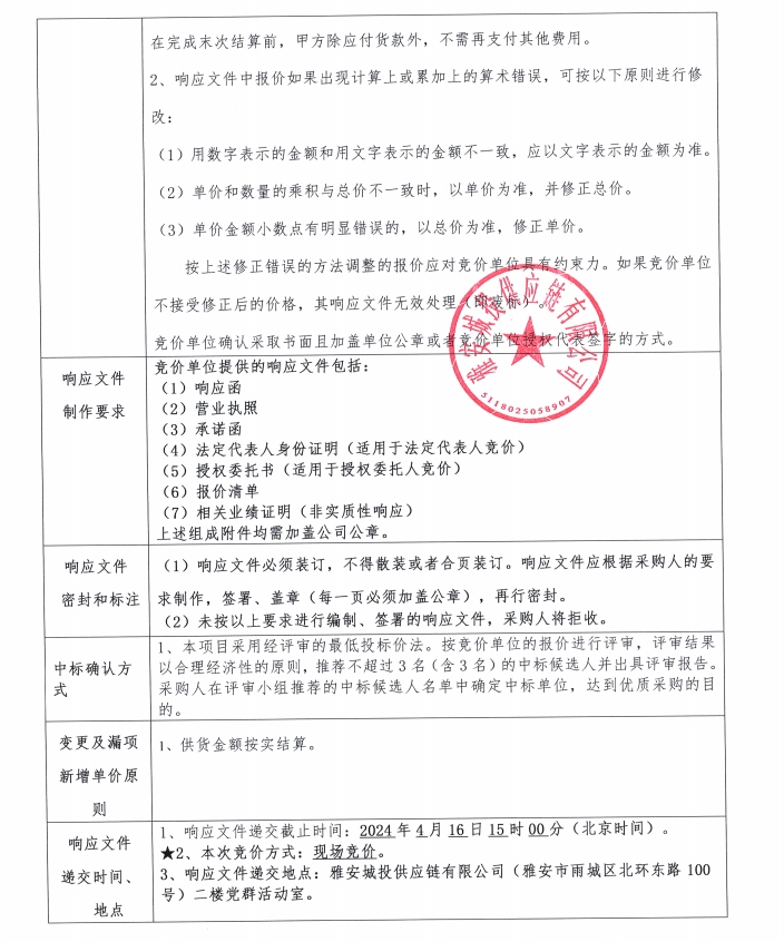 響應文件格式(競價)