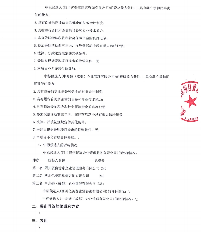 雅安市雅城建筑工程有限公司建筑工程施工總承包貳級(jí)資質(zhì)新辦咨詢(xún)服務(wù)采購(gòu)項(xiàng)目中標(biāo)候選人公示