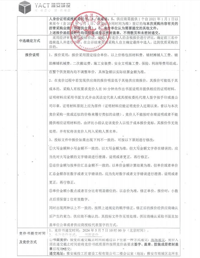 競(jìng)價(jià)函-雅安市雨城區(qū)人民醫(yī)院能力建設(shè)二期項(xiàng)目綠化(含總坪)專業(yè)分包項(xiàng)目瀝青材料采購(gòu)(二次)