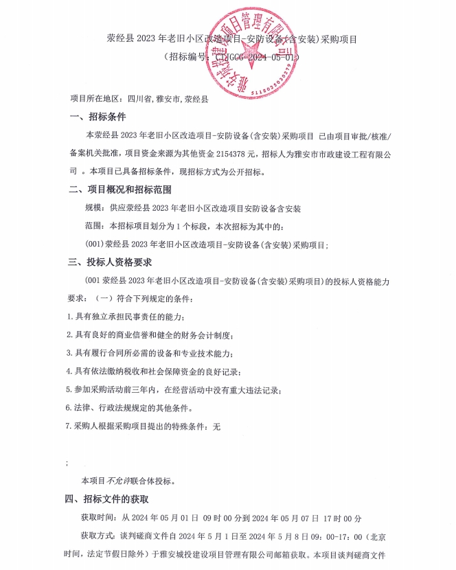 滎經(jīng)縣2023年老舊小區(qū)改造項目安防設備(含安裝)采購項目公告