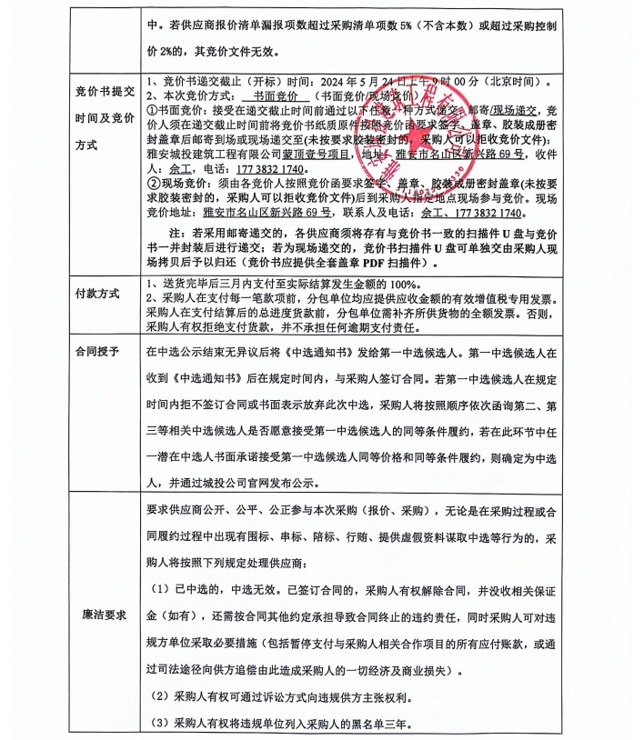蒙頂壹號項目穿孔水泥板裝修材料采購競價公告