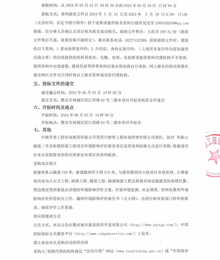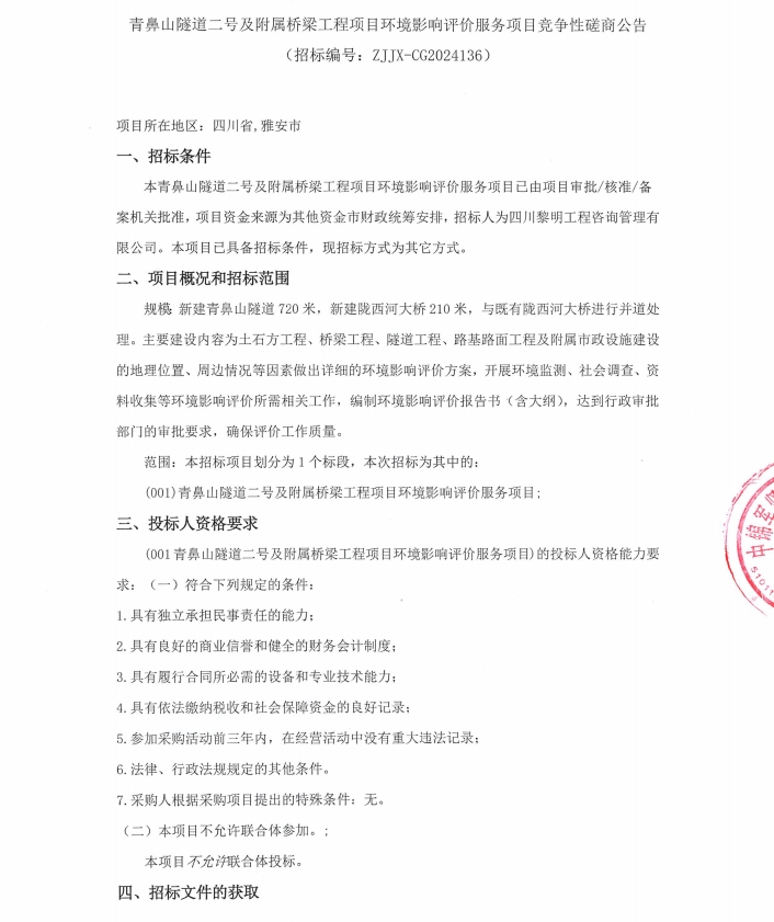 青鼻山隧道二號及附屬橋梁工程項目環(huán)境影響評價服務(wù)項目競爭性磋商公告