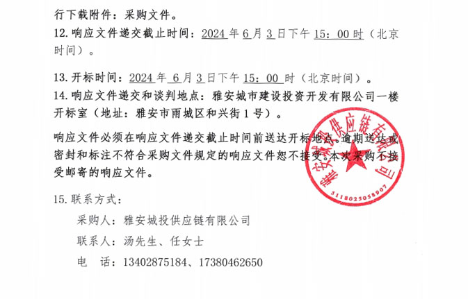 2024年6月至2025年5月雅安城投供應(yīng)鏈有限公司年度袋裝水泥采購公告