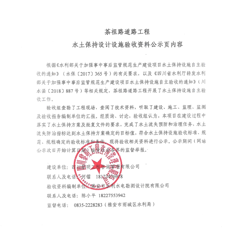 茶祖路道路工程水土保持設(shè)計(jì)設(shè)施驗(yàn)收資料公示頁(yè)內(nèi)容